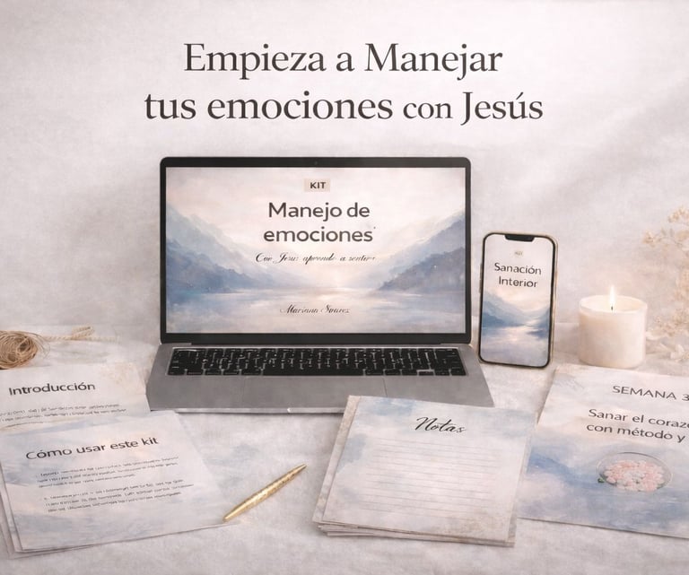 Descubre este kit digital para fortalecer tu bienestar emocional, basado en principios cristianos. Contiene herramientas prácticas, ejercicios y reflexiones para que aprendas a sentir y gestionar tus emociones de la mano de Jesús. Ideal para quienes buscan crecimiento personal y espiritual en un formato accesible y motivador.